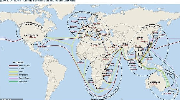 摩根大通的航运地图显示,运往澳洲的海湾石油大部分将于4月20日前停止交付