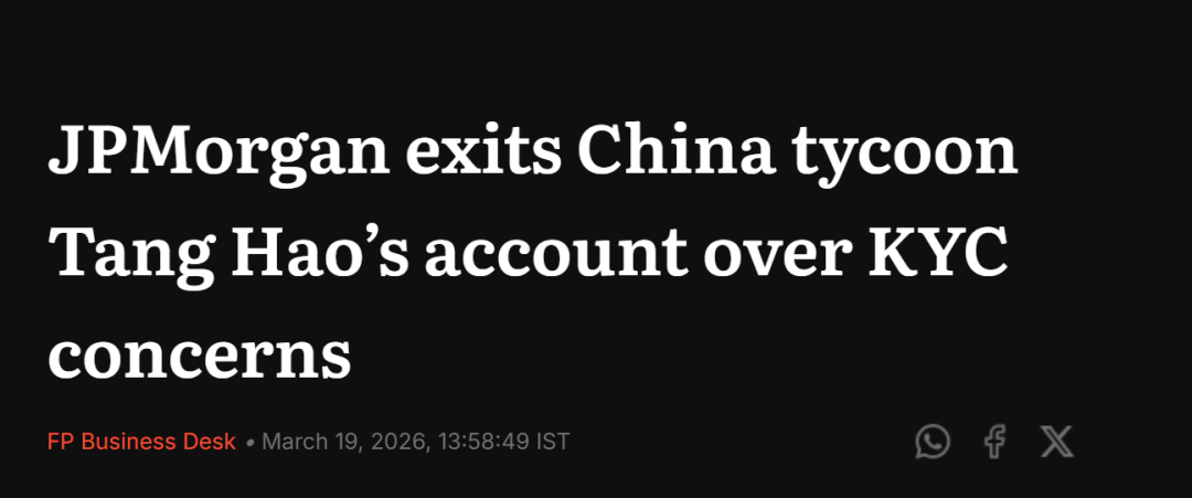 在华尔街,私人银行主动将一位身价数十亿美元的超级富豪拒之门外,是极其罕见的事件。然而,就在2026年3月中旬,顶级投行摩根大通(JPMorgan Chase)却做出了这样一个决定:正式关闭中国籍投资者唐浩(Hao Tang)的私人银行账户。