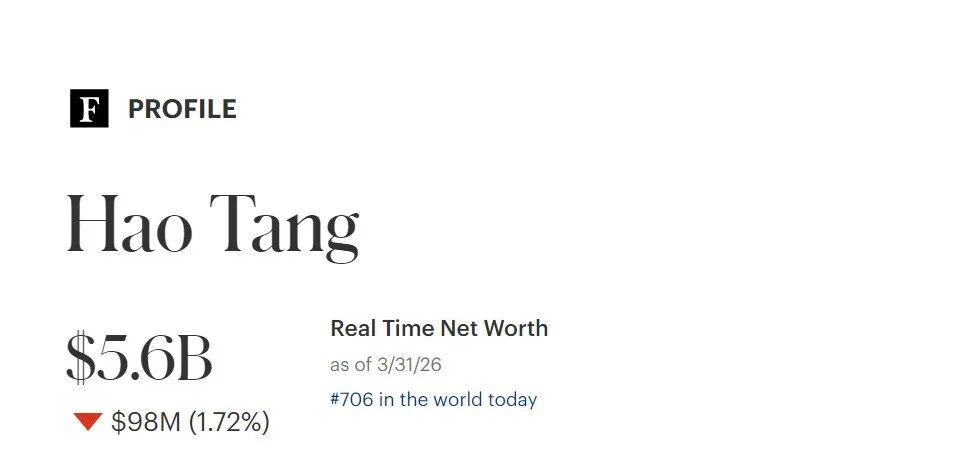 唐浩并非泛泛之辈。作为2026年福布斯全球富豪榜上榜者,他坐拥约64亿美元的净资产,曾是摩根大通中国私人银行团队的顶级客户,每年为该行贡献数百万美元的收益。
