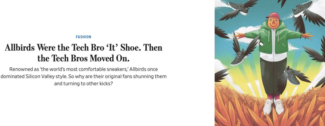 《华尔街日报》曾连续发布两篇报道,写道“Allbirds曾经是科技圈男生最爱的网红鞋,但后来他们不买账了”,质疑Allbirds的鞋子“不再时尚”,甚至有人吐槽“下雨就会坏”。