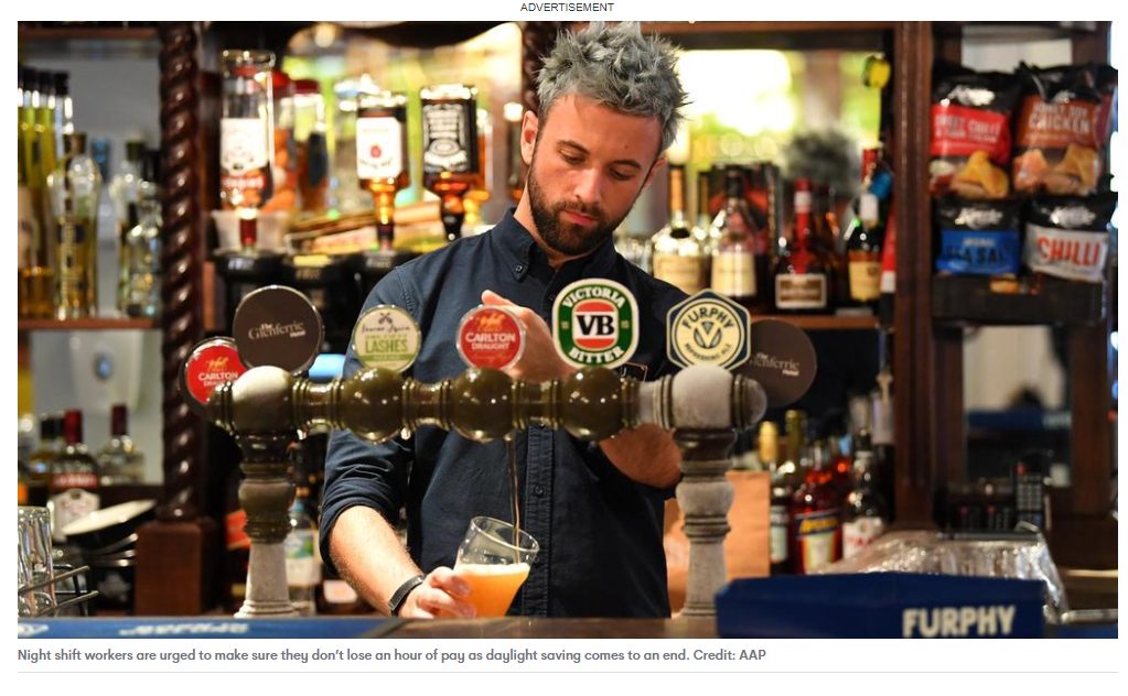 据《7news》报道,澳洲夏令时的调整随即带来了一个漏洞,在新州、维州、南澳、塔州和首都领地,数以千计在医院、加油站、快餐店和仓库工作的澳大利亚人将在复活节周日无偿工作60分钟。