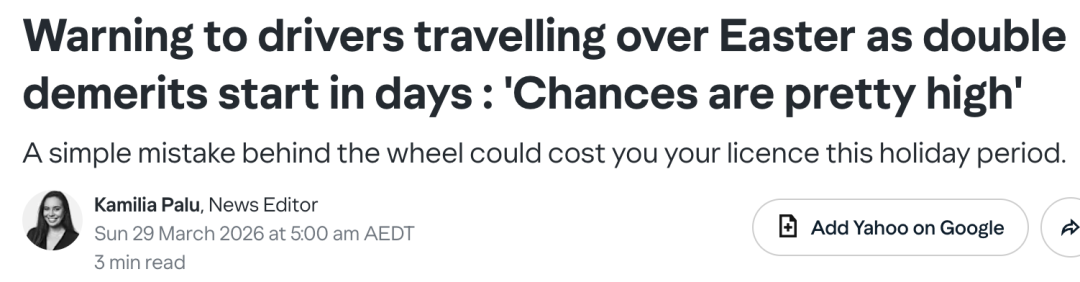 尤其是在新州、首都领地等地区,“双倍扣分”马上就要开始了,一个平时看起来不起眼的小错误,很可能直接让你面临驾照被吊销的风险。