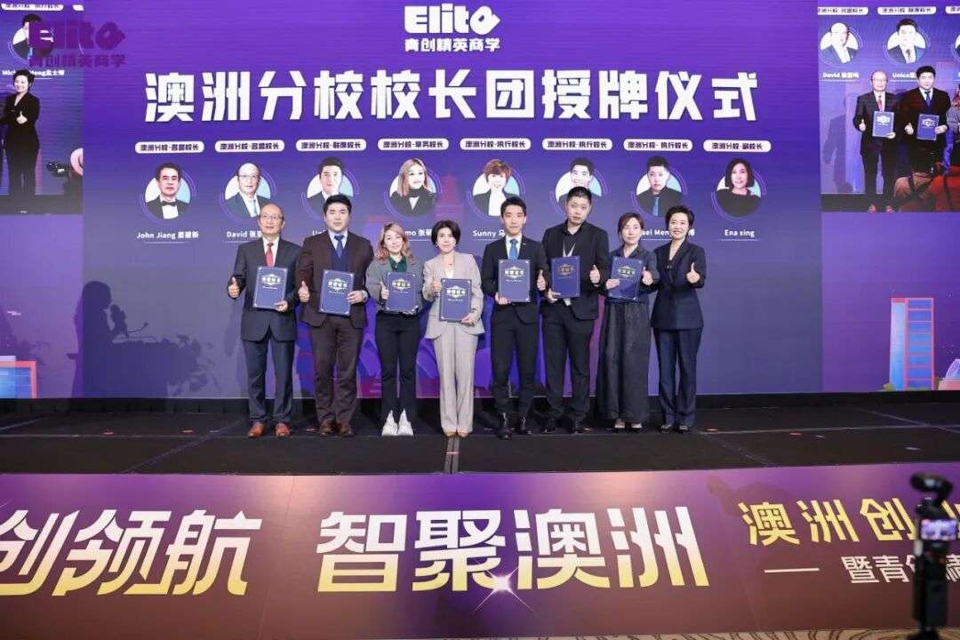 大会授牌仪式上,青创精英商学创始人安娜院长为澳洲分校校长顾龙鹰及核心校董团队郑重授牌,这一庄重时刻标志着青创精英商学成熟的创业赋能体系正式落地澳洲。