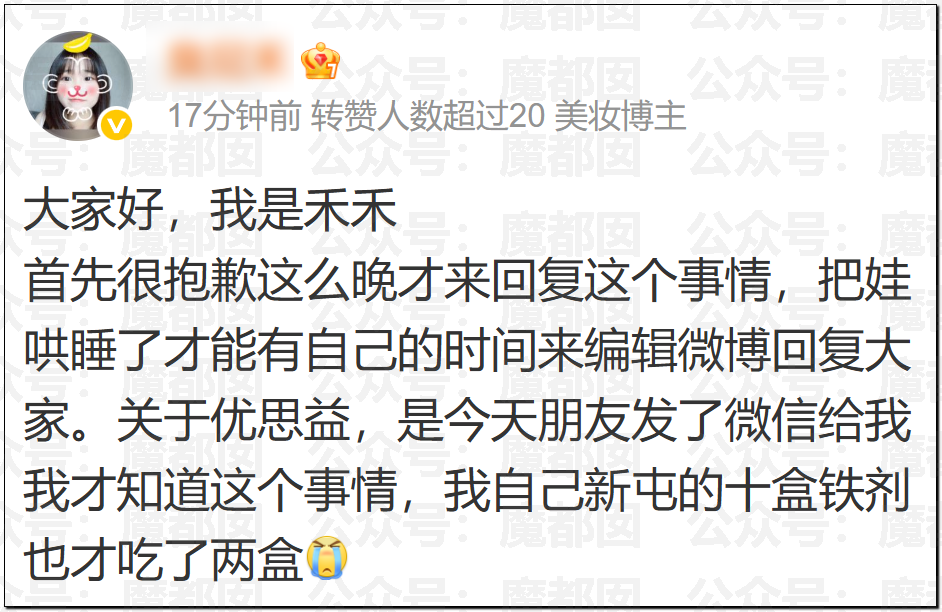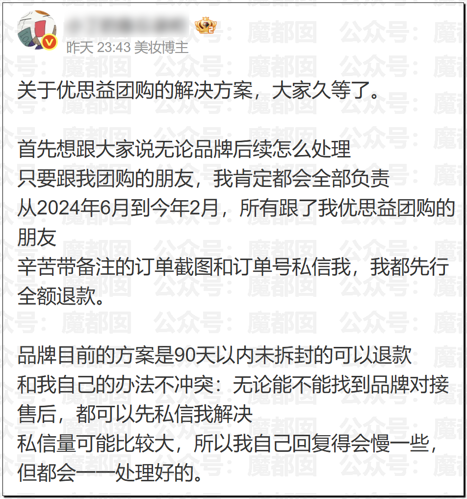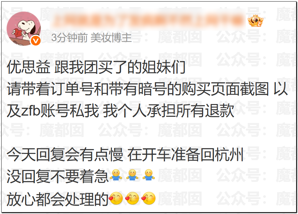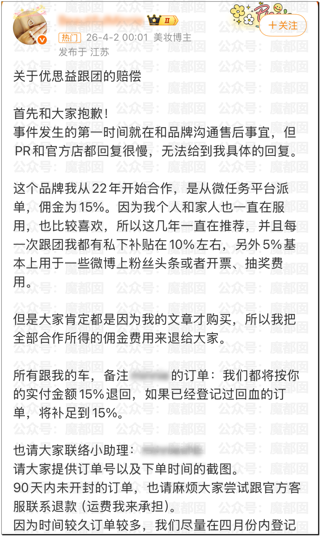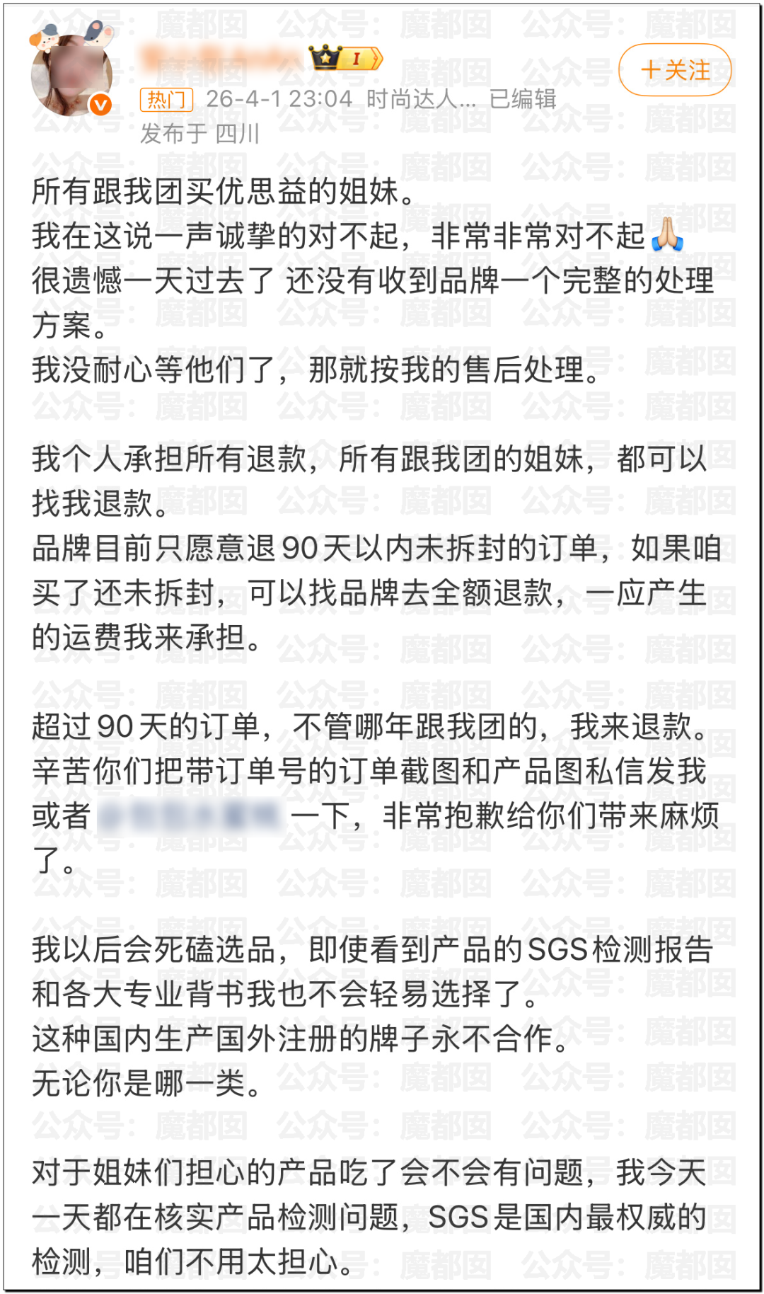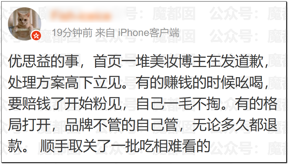 因为这个东西主要靠的就是网络销量,所以大量的网红博主中招,纷纷道歉和赔偿。