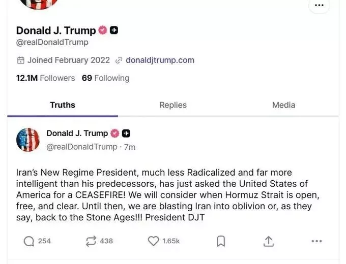 特朗普一大早就在Truth Social上扔了颗炸弹——伊朗主动求停火了!