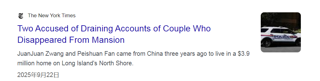 收藏上海富商夫妇在纽约豪宅离奇失踪!豪车还在、留下两个孩子,一年了进展令人心凉...