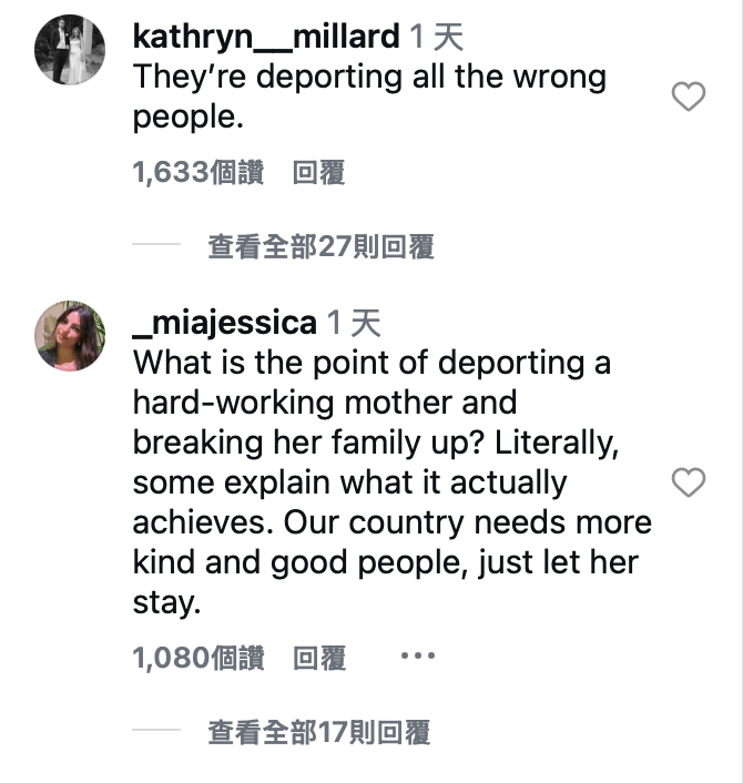 “他们显然驱逐错了人。驱逐一个对社区有贡献、爱护家庭的母亲,除了撕裂家庭,到底能达成什么目的?”