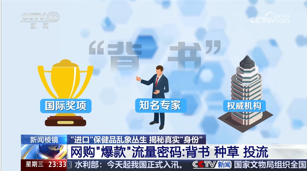 央视曝光称,调查表明,这类保健品的推广都是“公式化”三部曲:背书、种草、投流。