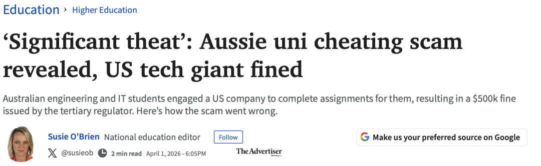这类作弊服务被监管机构视为对高等教育体系 “完整性和声誉的重大威胁” ,不仅影响澳洲本土,也波及国际层面,甚至可能对国家经济造成冲击。