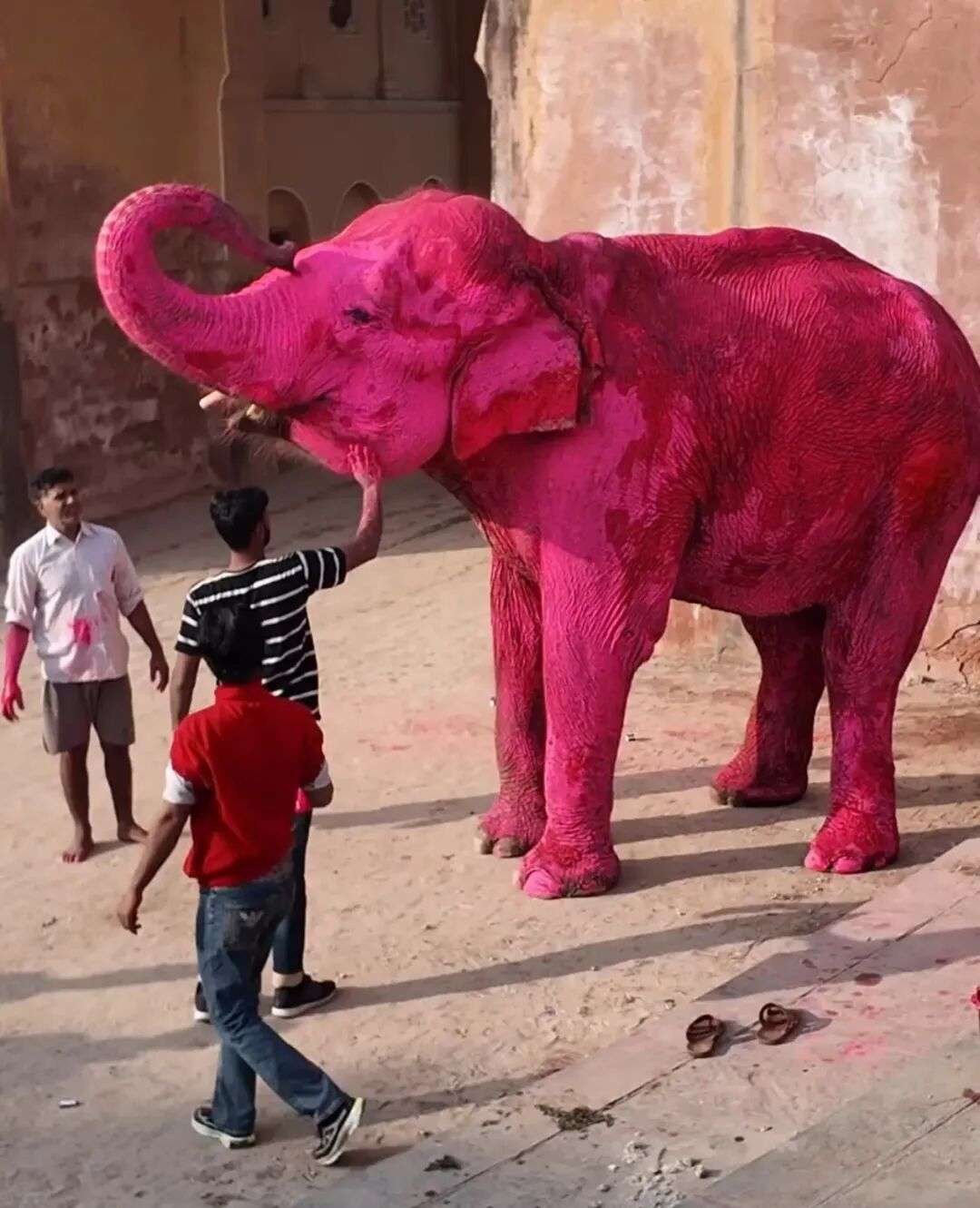 收藏外网骂翻!知名摄影师为出片将65岁大象全身染成粉红色,拍完没多久它死了!