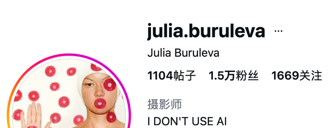 这时大家可能要再看看茱莉亚的页面简介,明确大写了:“我不用AI。”