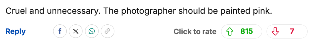 “残忍且没必要。这个摄影师才该被涂成粉色。”