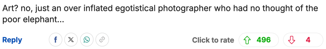 “艺术?才不是,只是一个被自大填满、完全不考虑可怜大象的摄影师…”