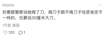 “你要跟警察说她掏了刀,掏刀子跟不掏刀子性质肯定不一样,也要说30厘米大刀。”
