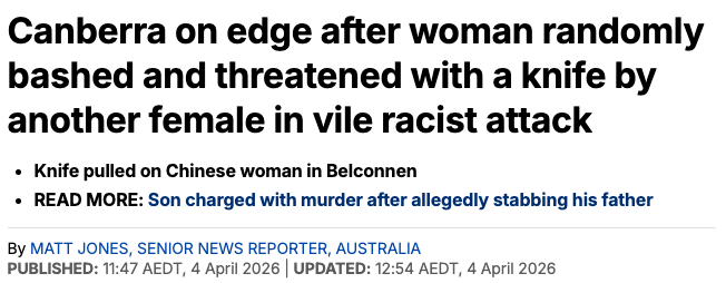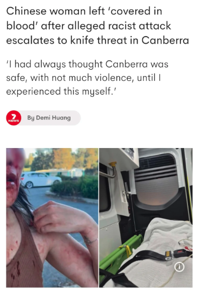 她还提到,自己在堪培拉生活多年,一直认为这里非常安全,从未想过会因为“亚洲面孔”而遭遇这样的攻击。现在的她,已经开始对周围环境产生不信任感,出门都会下意识警惕陌生人。