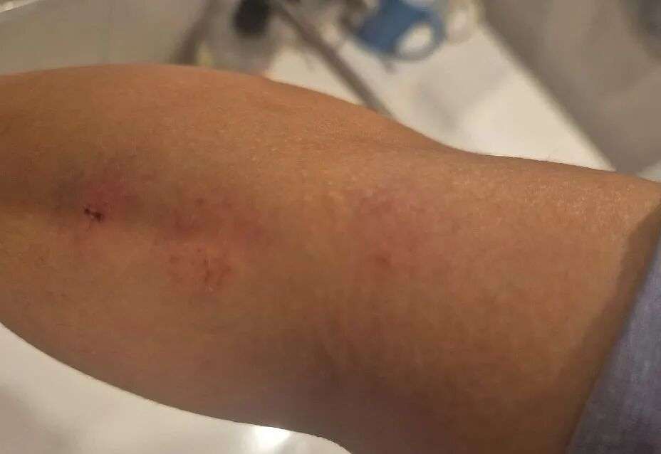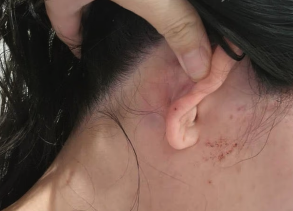 最终,对方带着孩子迅速驾车离开,而张女士则被送往医院。检查结果显示,她面部和手臂多处淤青,左脸颊有裂伤,耳朵和嘴唇出血,整个人满身血迹。