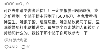“可以去申请受害者赔偿!!一定要报警+医院验伤,我之前看到一个帖子甚至领了1600多刀,有免费看精神医生。”