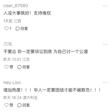 当事人本人在小红书也发了帖子,引发大量华人网友留言: