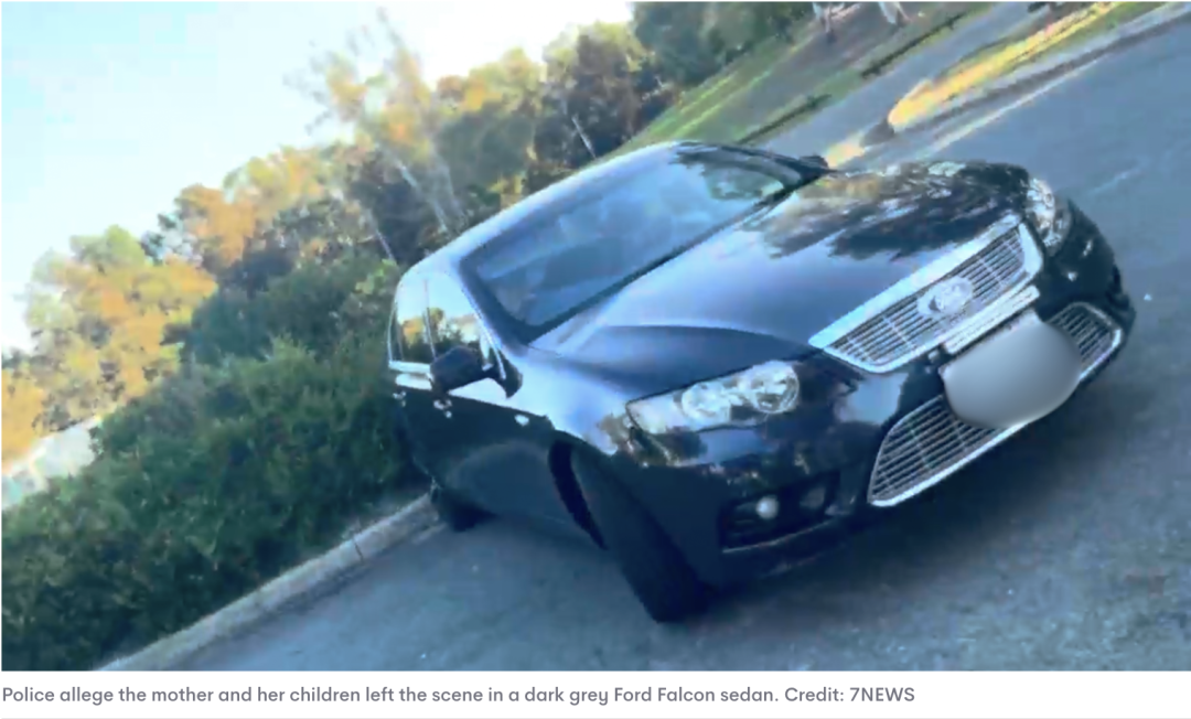 事件发生后,嫌疑人迅速逃离现场,驾驶一辆深灰色Ford Falcon,与两名孩子一起离开。