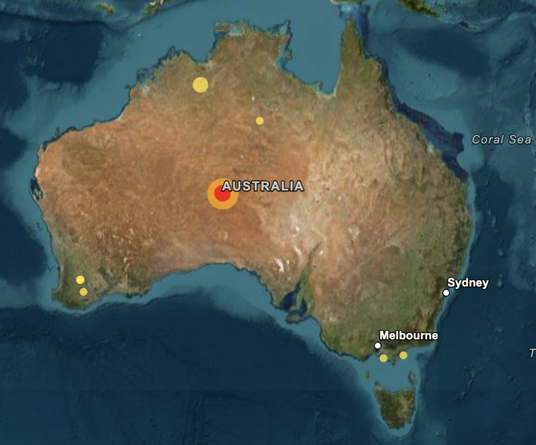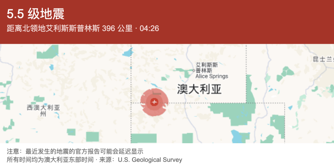 今晨,澳洲中部发生一起明显地震: