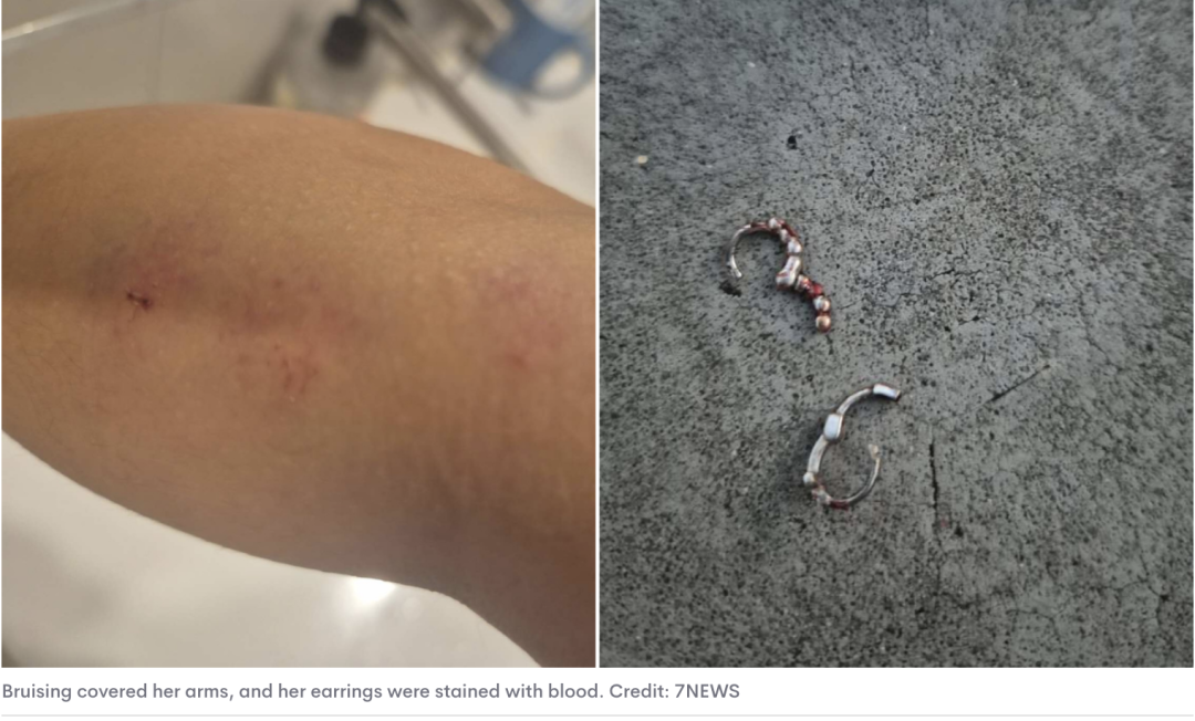 受害人回忆当时的状态时,仍情绪激动,其面部出现约5毫米伤口,手臂大面积淤青,左耳流血(包括耳洞),鼻子出血:整个人满身是血!