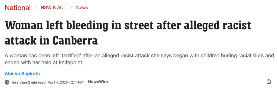 一起令人震惊的袭击事件,发生在被认为“最安全城市之一”的堪培拉。