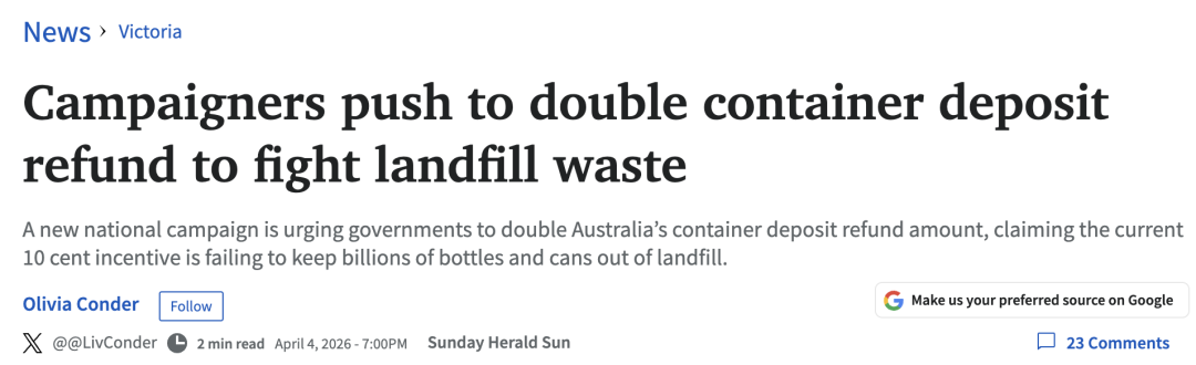 在环保与家庭经济同时受关注的背景下,澳洲一项名为 “20 Cents Makes Sense” 的全国性倡议正在推动政府将:每个瓶子/易拉罐的回收返还金从10澳分直接翻倍到20澳分!
