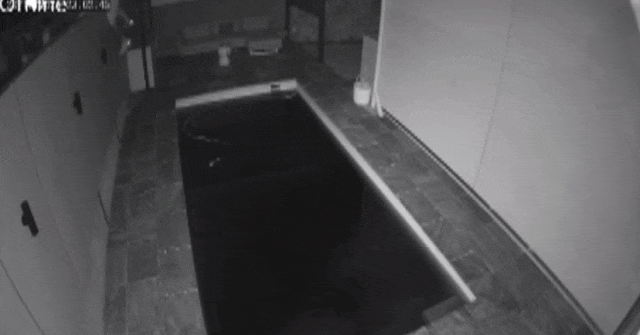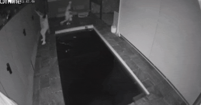 还有两个人翻进邻居家的院子,其中一人踉跄跌进了邻居的游泳池。