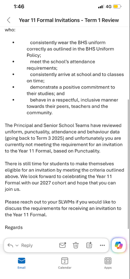 然而,学生们反映,目前已有近40%的11年级学生收到警告,称他们可能无法参加7月的舞会。