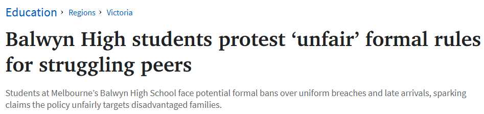 最近,墨尔本东区知名公立中学 Balwyn High 因一项毕业舞会(formal)的入场规定,被推上了舆论的风口浪尖。