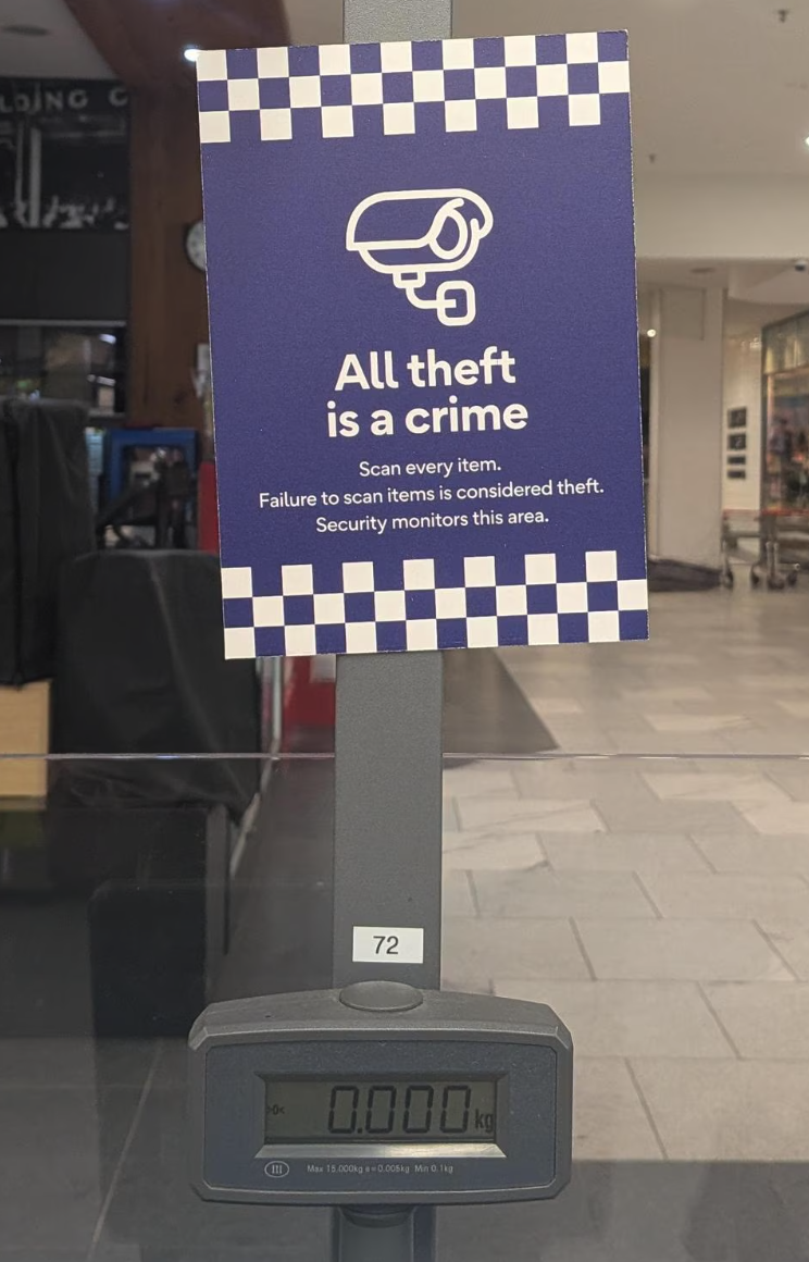 最近,澳洲超市的一块“反盗窃提示牌”,意外引发了不小争议。在Sydney一家Woolworths门店内,自助结账区域新增了一块警示牌,内容明确写着“所有盗窃行为都是犯罪,未扫描商品将被视为偷窃,并有安保监控”。原本是为了防盗的提醒,却因为设计和语气,让不少顾客感到不适,甚至在网上引发热议。