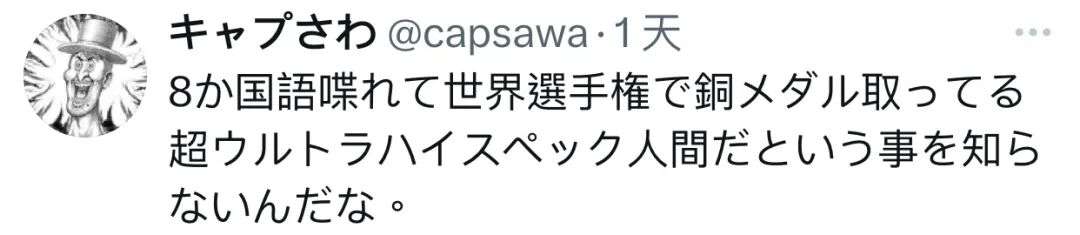 “这些网友似乎没有认出,左边这位是会说8国语言、并且在世界锦标赛上获得铜牌、实力超群的人。”