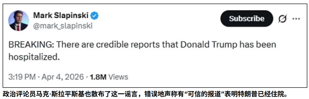 随后,包括Krassenstein以及政治评论员Mark Slapinski 在内的多个X账号传播相关说法,累计获得数百万浏览量。