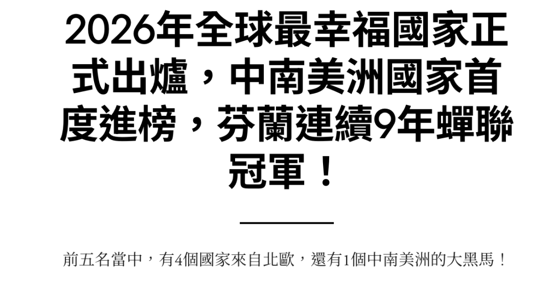 2026年的世界幸福报告告诉我们,幸福不仅是个人感受,也与社会结构、政策与文化密切相关。