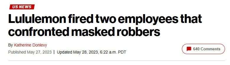 当时,一群惯犯进Lululemon零元购,抓起一堆衣服就跑。有两名员工试图阻止,结果就被解雇了。