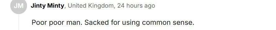 “这人太倒霉了。因为遵循常识而被炒鱿鱼。”