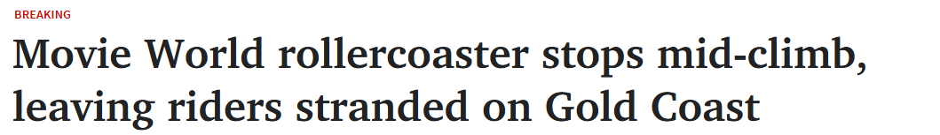 黄金海岸Movie World过山车爬升途中突然停运,游客被悬空10米