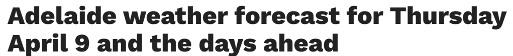 Adelaide 将迎来降温和阵雨天气:冷锋今日过境,本周后段湿冷多风,周末偏冷,下周初逐渐转晴回暖。今日降雨概率高,或有雷暴,最高约22°C;周五降至19°C并伴随持续阵雨和大风。周六、周日维持18–19°C,偶有零星降雨、风力较强。