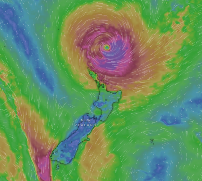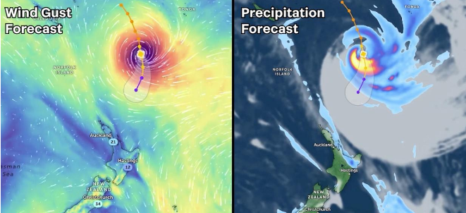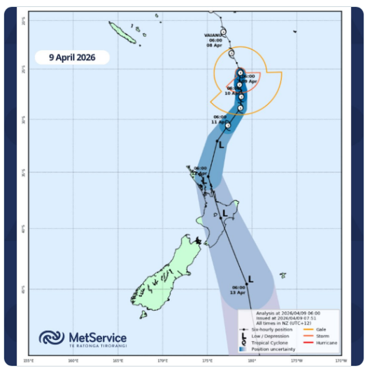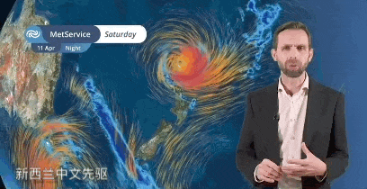根据最新的气象模型,气旋中心预计将在本周日(4月12日)袭击新西兰。