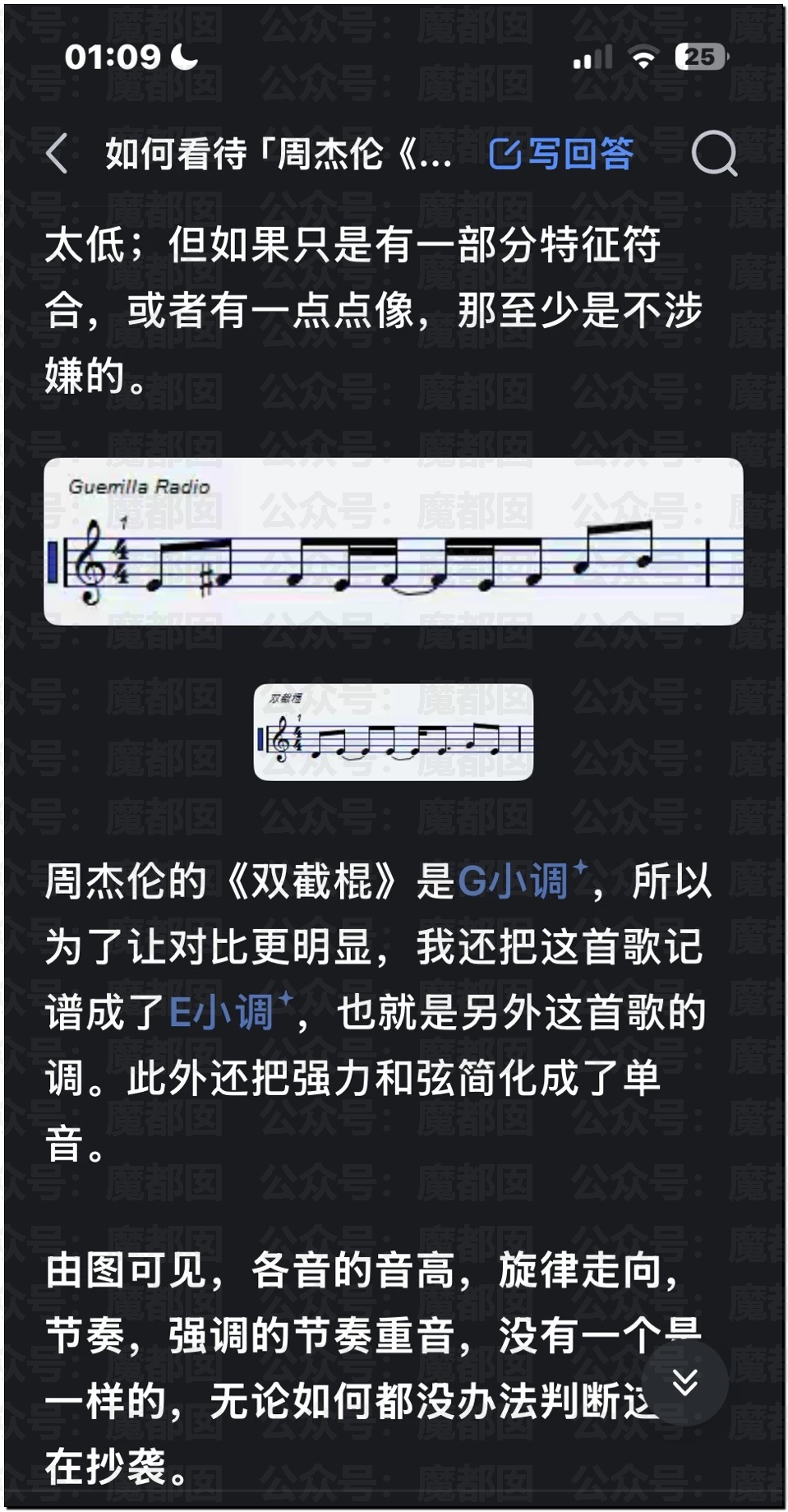 我们原以为这个事情是新出来的,没想到1年前就有博主说这个事情了,2025年4月7日,一个专业的音乐人通过软件仔细分析比对,提到了在他人的旋律上混合了自己的旋律变成了“自己原创”的内容,但是不能界定抄袭