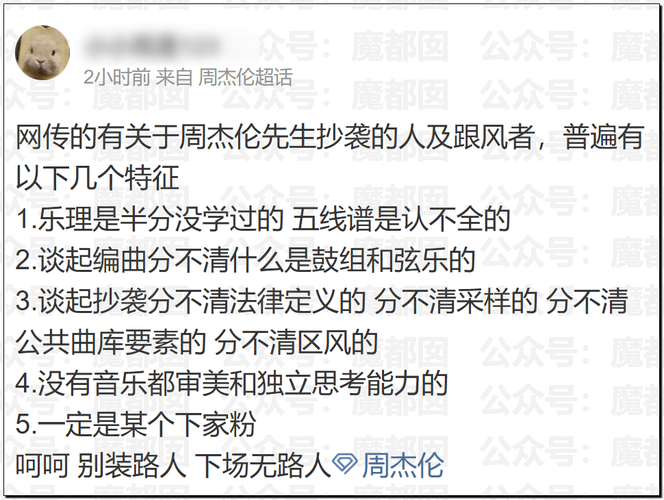 这个事情理论上应该算是李荣浩对单依纯发飙之后的“衍生”事件,因为不少单依纯粉丝去“反攻”李荣浩,说他的歌也涉嫌抄袭等等,后续就有这个周杰伦的事情出现了。