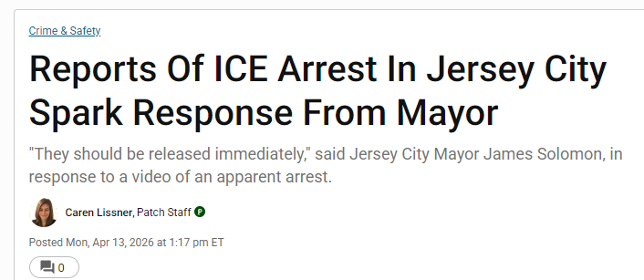 泽西市方面表示: 市政府事前并未接到任何通知,也未参与此次行动。但随后进一步确认:参与此次行动的是联邦执法人员(federal agents)
