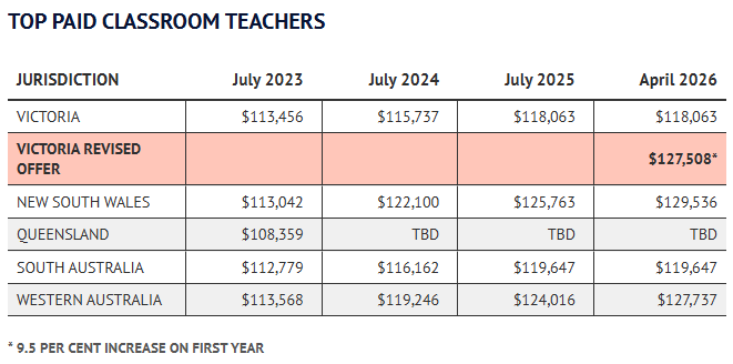 目前维州公立学校教师的起薪大约是$79,589,是全澳最低的。工会还指出,维州公校的整体经费也是全国垫底——政府被指在过去几年里削减了24亿澳元的教育预算。