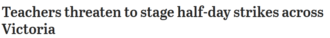 各位家长注意了,维州的公立学校老师已经投票决定,在第二学期(Term 2,也就是4月下旬到6月下旬)再次发起罢工行动。