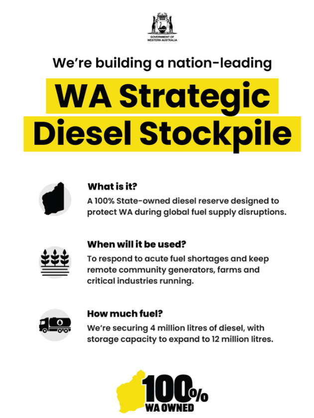 不过,也有一个值得关注的好消息。面对这场突如其来的燃油危机,西澳开始建立独立的能源安全体系,建立柴油战略储备,总量达400万升。