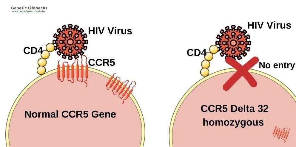 然而世界上有极少数人,天生携带一种叫CCR5Δ32的基因突变。