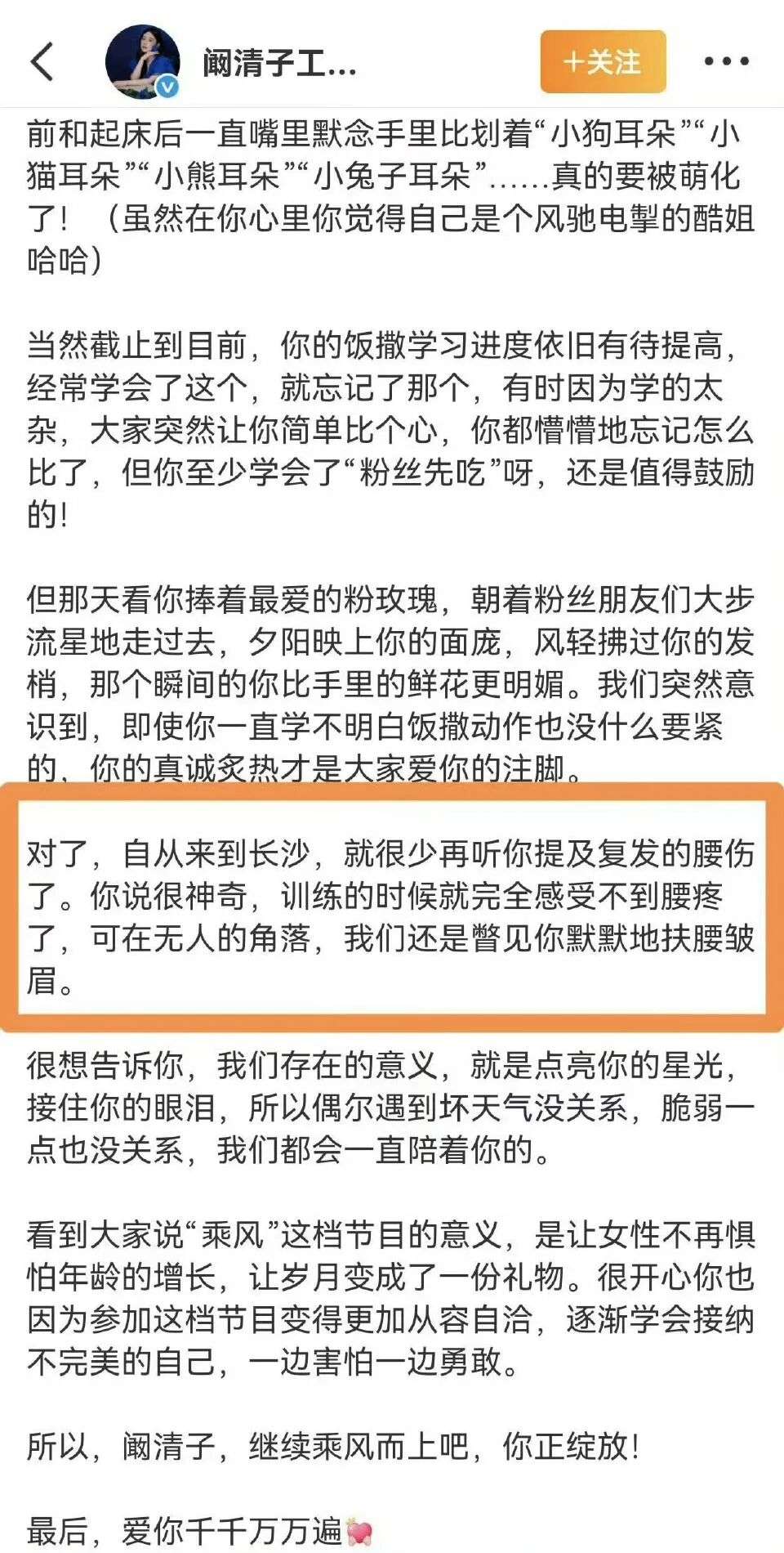 收藏阚清子腰伤复发还坚持录制浪姐,工作室都出来说话了!