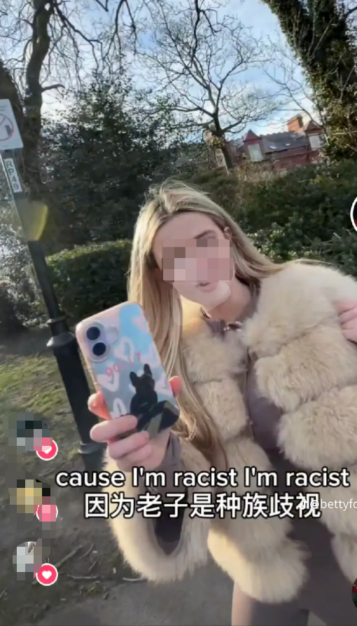 最嚣张的是,那个金发女生直接承认自己是种族主义者,还作势要打人。