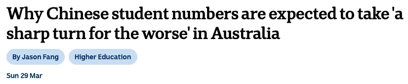 评级机构穆迪年初更预测:到2030年后,中国学生赴澳规模可能出现 “明显下跌” 。