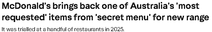 最近,澳洲网友喊话最多、最想复活的隐藏菜单产品要正式返场了,还做成了一个新系列。